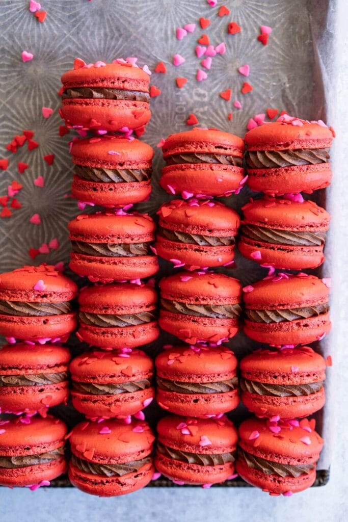 Macarons are a sophisticated sweet that can be customized for Valentine’s Day. Fill them with flavors like rose, raspberry, or chocolate ganache, and dye the shells in shades of red, pink, or white. Heart-shaped macarons take them to the next level of festive.