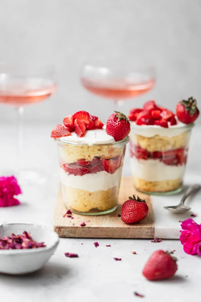 Light and fruity, strawberry shortcake parfaits are a refreshing Valentine’s treat. Layer angel food cake, whipped cream, and fresh strawberries in clear glasses or jars for a dessert that’s as beautiful as it is delicious.