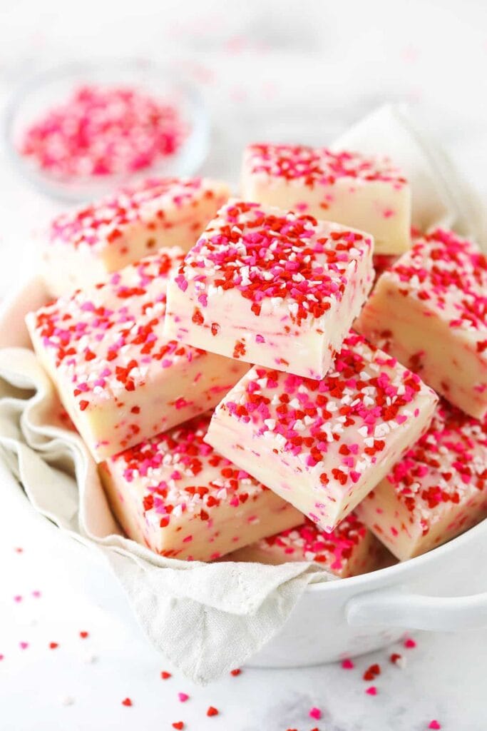 Rich, creamy fudge is a wonderful Valentine’s treat that’s easy to make and share. Choose flavors like chocolate, peanut butter, or strawberry, and cut the fudge into heart shapes for a festive touch. Wrap individual pieces in parchment paper for gifting.