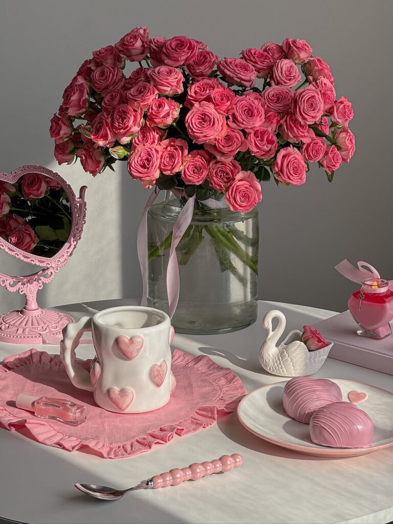 Florals everywhere keep the romantic feeling alive. Real flowers in soft pink and cream tones are ideal, but quality faux flowers work too. Roses, peonies, hydrangeas, and carnations all fit the aesthetic. Display them in vintage vases, milk glass containers, or teacups. Dried flowers and pressed flowers in frames also work beautifully and last indefinitely.