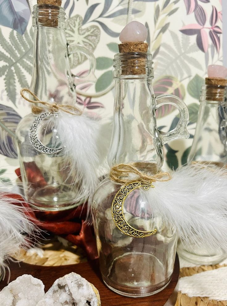Decorate bottles to hold your moon water with paint, crystals, or glitter. These adorned vessels can double as both magical tools and stunning decor pieces.