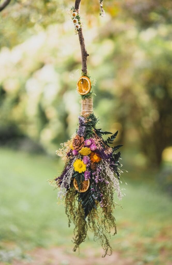 Create small decorative broomsticks using natural materials like twigs, herbs, straw, and twine. Hang them above doorways for protection or use them as festive ornaments during seasonal sabbats.