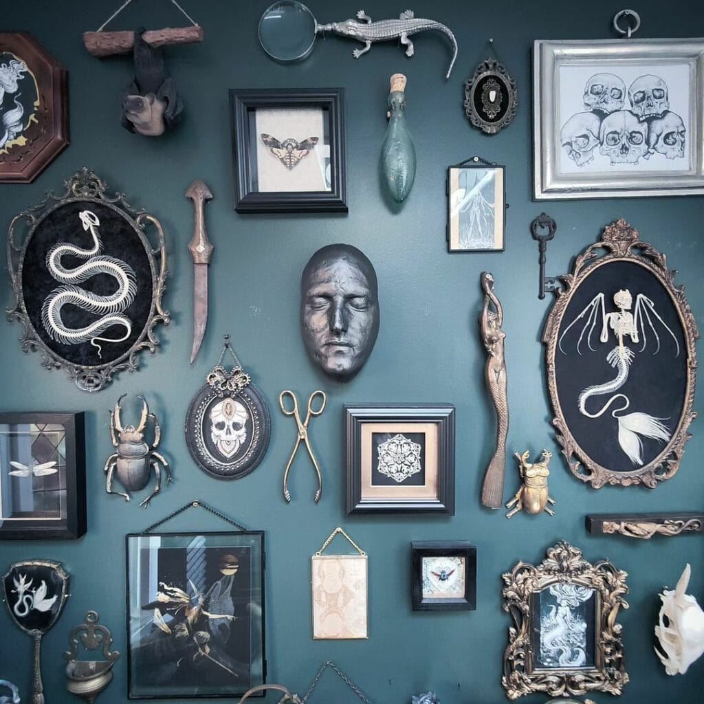 Vintage prints, gothic-inspired art, and occult-themed decor instantly add an aura of mystery and intrigue to your home. You can find art featuring mystical symbols, tarot card illustrations, or witchy botanicals to adorn your walls. Black-and-white prints of the moon, sun, and stars or alchemical symbols provide a refined yet arcane look.