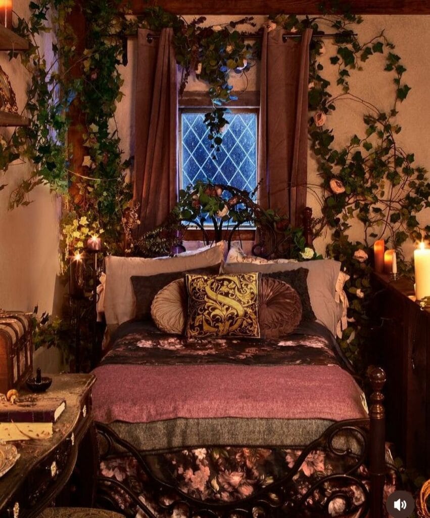 The right color palette can make all the difference in achieving a witchy vibe. Deep, moody tones like black, burgundy, emerald green, and plum create a dark, magical ambiance, while metallic accents like gold or silver add a mystical shimmer. Add velvet cushions, soft throws, and dark wood furniture to complete the look. Whether you go for a minimalist or gothic aesthetic, these colors can transform any space into a witch’s haven.