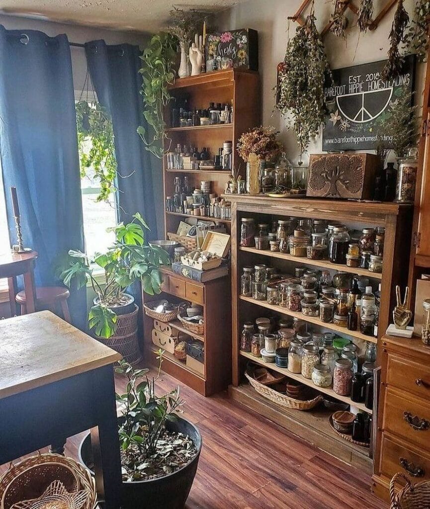 - Herbs in the Kitchen: Grow kitchen herbs like basil, rosemary, and sage for cooking and spellwork. These can be displayed in vintage pots or hanging planters for a charming witchy kitchen vibe.