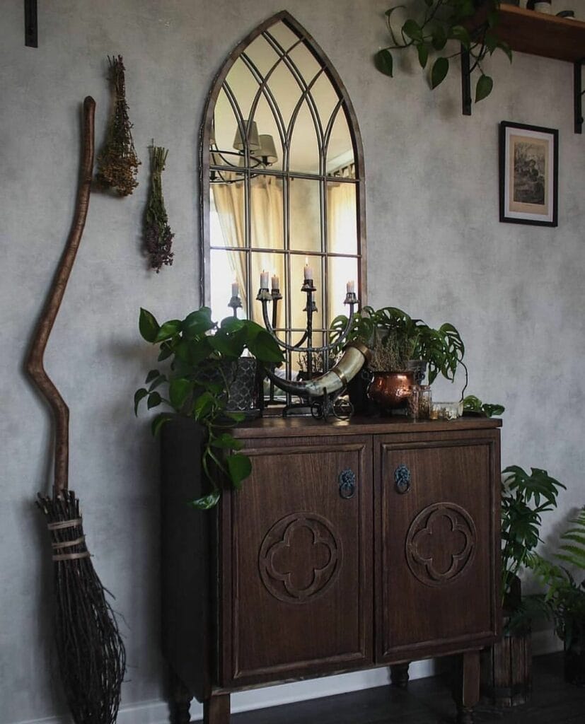 Mirrors, long associated with magic, scrying, and protection, are a great way to elevate the witchy vibes of your home. Choose mirrors with ornate, vintage-style frames, and place them in areas where they can reflect light and energy. You can even create a moon mirror by finding a crescent-shaped mirror or arranging small circular mirrors in a moon phase pattern.