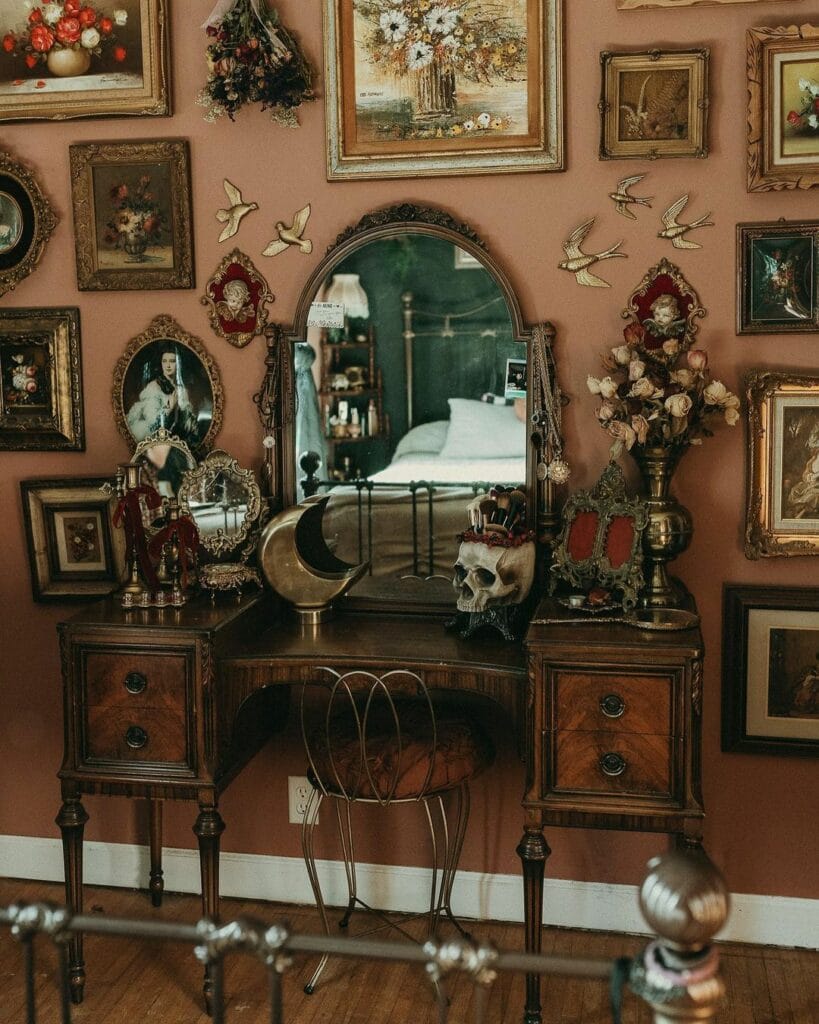 Antique shops and thrift stores are treasure troves for finding unique, witchy pieces like old books, brass figurines, or even vintage mirrors that can bring a sense of history and magic into your space.