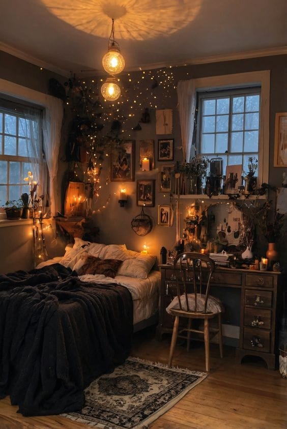 - Fairy Lights and String Lights: Drape these delicate lights over your bed, along walls, or around your sacred space to add a soft, otherworldly glow.