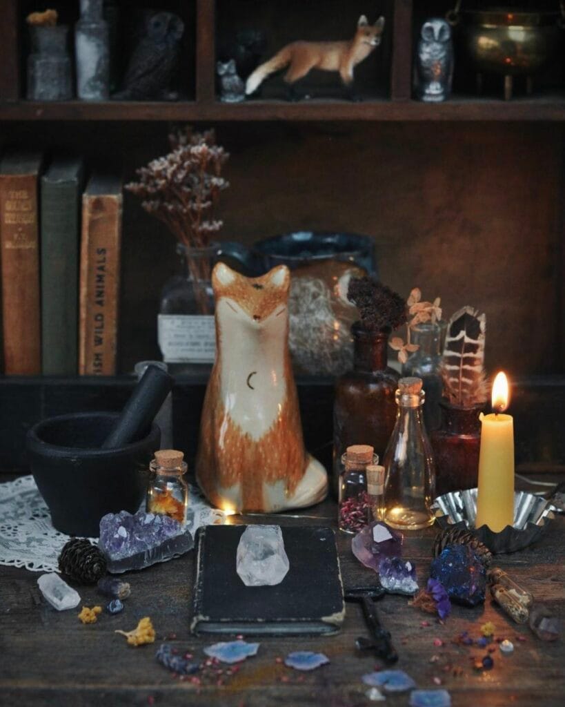 You can also keep a journal or grimoire out in your sacred space, where you can jot down your thoughts, spells, or dreams, adding a personal, magical touch to your decor.